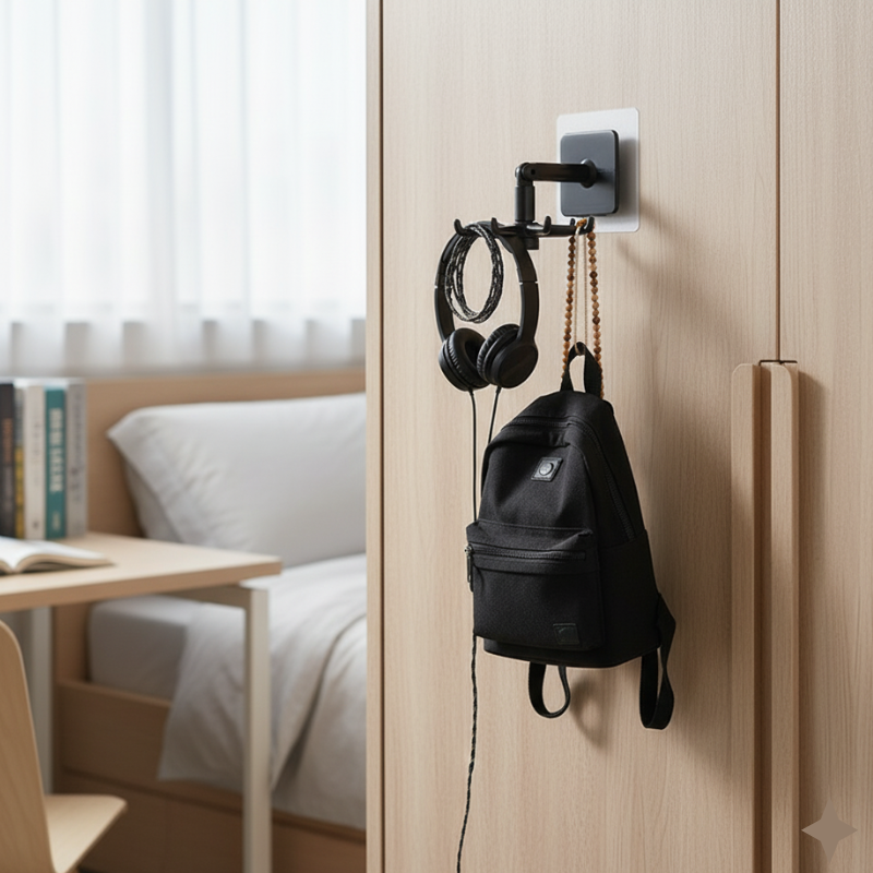 - Fixation sans perçage : se colle facilement sur toute surface lisse (mur, porte, cuisine, salle de bain).
